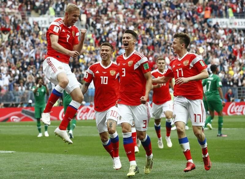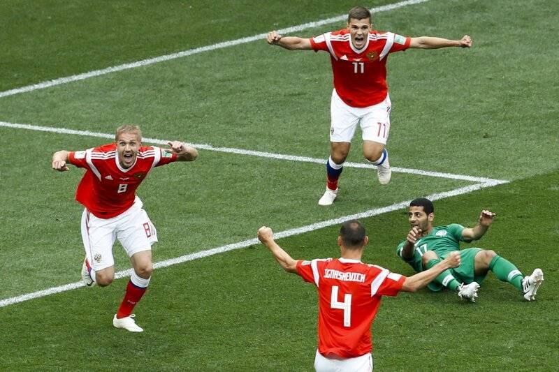 Dos goles brillantes de Denis Cheryshev, los cabezazos Yuri Gazinsky y Artem Dzyuba y un tiro libre de Alexandr Golovin alegraron la inauguración para los rusos, que llegaron al Mundial inmersos en una racha de siete partidos sin ganar. Golovin también fue el asistente en los tantos de Gazinsky y Dzyuba.