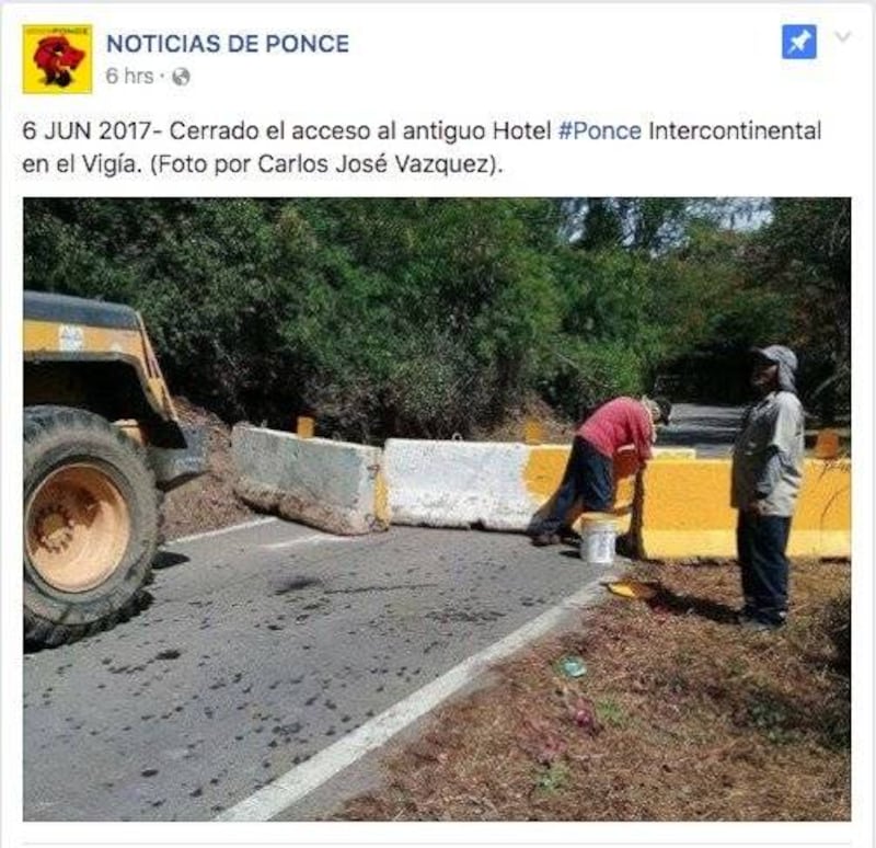 El municipio parece que tomó cartas en el asunto y decidió cerrar el acceso al hotel. Según una foto de la página Noticias de Ponce, se puede observar que colocaron barreras de hormigón en el camino que llega a la desolada estructura.