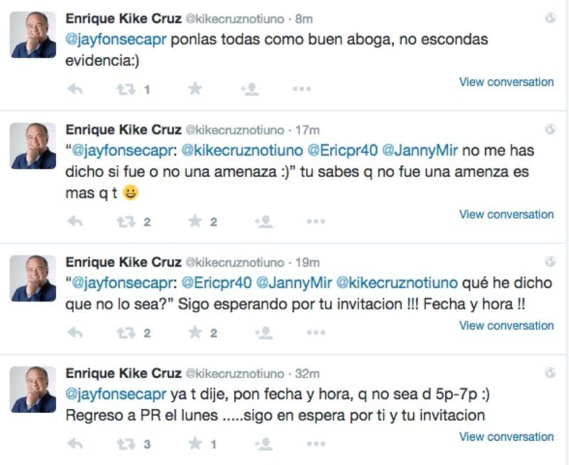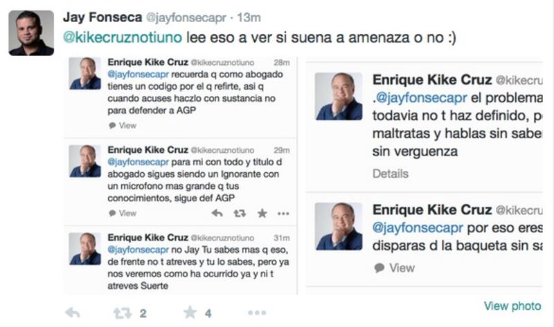 ¡Recojan los niños! El abogado Jay Fonseca se enfrascó en un careo con el analista político Enrique “Kike” Cruz. El acalorado debate ocurrió en la red social Twitter durante el mediodía. Fonseca inició la discusión con un tuit que hablaba sobre columna de Cruz en un rotativo de circulación nacional.