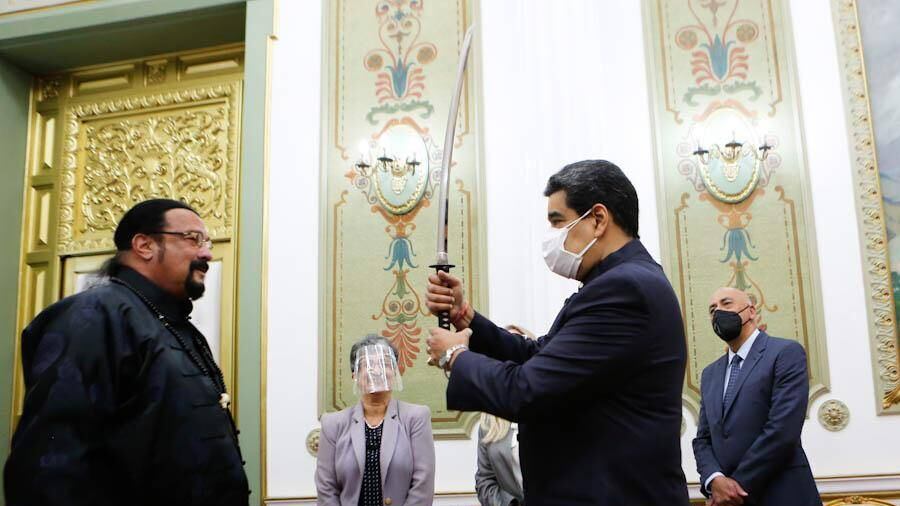 Steven Seagal visitó a Maduro y le regaló una espada samurái