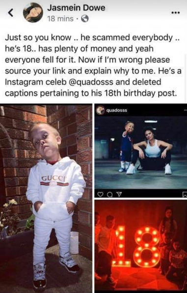 Luego de que la teoría de Jasmein se echó a rodar en las redes, una avalancha de información contradictoria sobre Quaden salió. Mientras algunos proclamaban en las redes “biografías” de Quaden que afirmaban que tenía 10 años de edad, otros decían que esas páginas fueron hechas luego de que se viralizara el video.