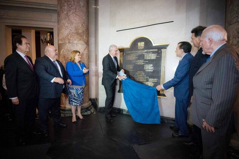 La placa, que se ubica en la rotonda del Capitolio, pone al relieve los 100 años de historia del Senado e incluye los nombres de los exgobernadores que fueron presidentes, como Luis Muñoz Marín, Rafael Hernández Colón y Luis A. Ferré Aguayo.