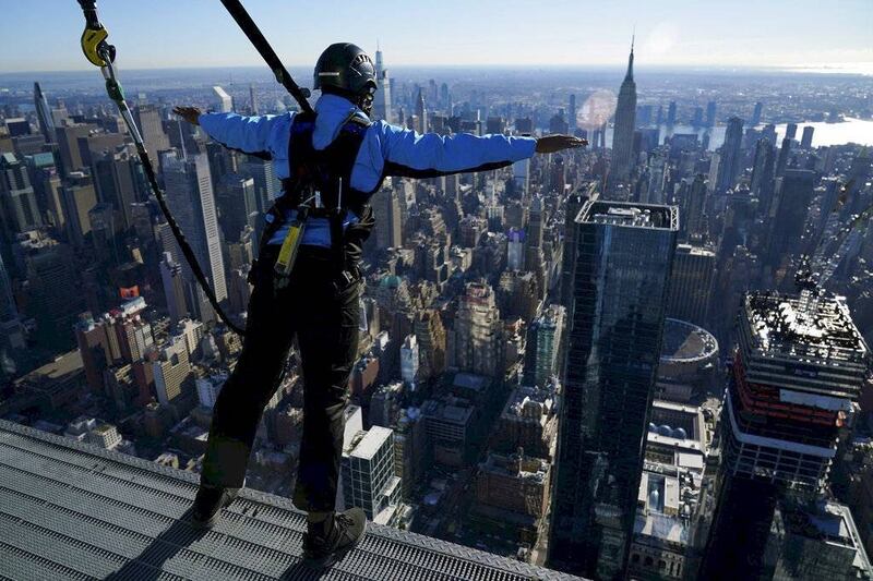 Al pisar los escalones metálicos de la parte exterior del rascacielos, un arnés garantizaba que no caería al vacío, desde casi 400 metros (1,300 pies) de altura.