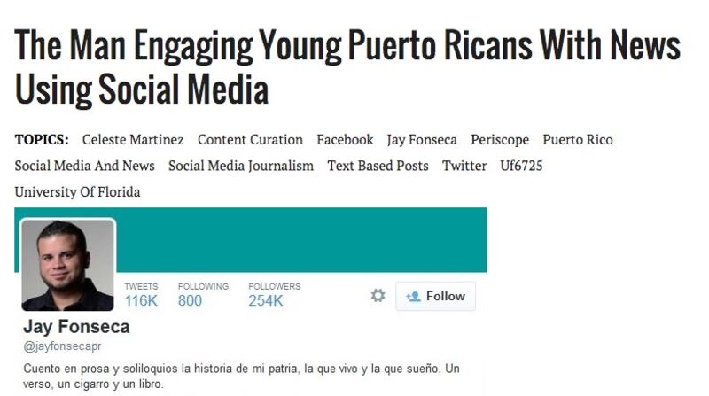 La Universidad de Florida, especializada en grados de redes sociales, hizo una reseña sobre el trabajo del abogado y analista político, Josué Fonseca. En el portal de la institución educativa explican la fiscalización del periodista en diferentes asuntos que afectan al país, su forma de llevar el mensaje en un lenguaje sencillo y la manera en que influye en sus miles y miles de seguidores en las diferentes plataformas sociales.