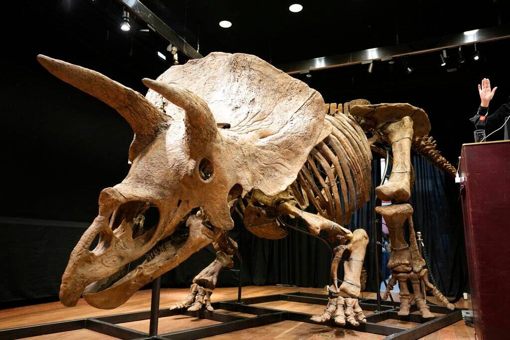 El mayor esqueleto de triceratops en el mundo, conocido como “Big John”, fue vendido por 6.6 millones de euros (7.7 millones de dólares) en una subasta en Paris el jueves.