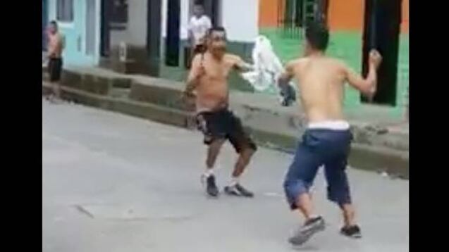 Dos gladiadores chimbos quisieron alivianar su riña con una batalla a machetazos en una calle cualquiera del barrio La Esneda, de la localidad Dosquebradas, en Risaralda, Colombia.