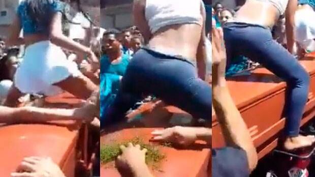 Una grabación de dos chicas perreando sobre un ataúd se ha vuelto viral en Facebook. Bajo el título “Cuando se muere el Brayan”, en el video se aprecia cómo dos jovencitas se montan sobre el ataúd y bailan cadenciosamente al ritmo del reguetón “Tumba la casa” de Alexio, mientras que las demás personas festejan el acto.