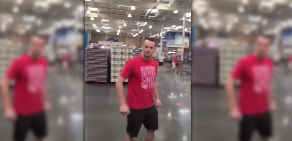El video fue tomado el pasado 27 de junio, evidencia del incidente que ocurrió en la tienda Costco Wholesale en el Gulf Coast Town Center en Florida. El mismo muestra a un hombre con una camisa que dice “Ejecutando el mundo desde 1776” (ya saben por dónde va la cosa).