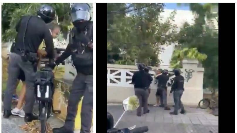 En lo que parece ser un incidente en horarios donde no aplica el toque de queda estatal, la Policía Municipal de San Juan usó cinco oficiales para detener a un ciclista que transitaba a plena luz del día por una vía de la capital.