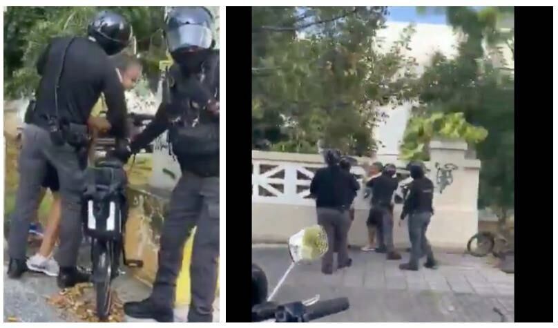En lo que parece ser un incidente en horarios donde no aplica el toque de queda estatal, la Policía Municipal de San Juan usó cinco oficiales para detener a un ciclista que transitaba a plena luz del día por una vía de la capital.