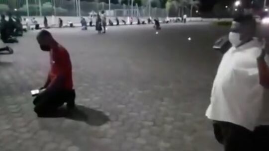 Familiares de personas contagiadas con Covid-19 llegan a las afueras del Hospital General Guasmo Sur en Guayaquil, para hacer oraciones de rodillas. Las imágenes fueron registras en video.
