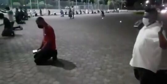 Familiares de personas contagiadas con Covid-19 llegan a las afueras del Hospital General Guasmo Sur en Guayaquil, para hacer oraciones de rodillas. Las imágenes fueron registras en video.