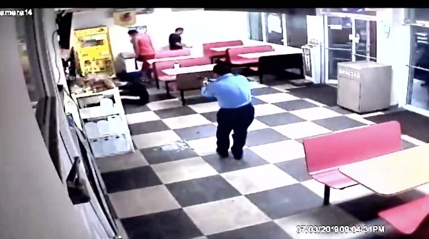 Durante su reportaje de ayer en Noticentro, la periodista Maritza Cañizares, de Televicentro, mostró un video de una cámara de seguridad dentro de la panadería de Vega Baja donde murió un asaltante tras recibir al menos un disparo de un Policía que se encontraba en el lugar.