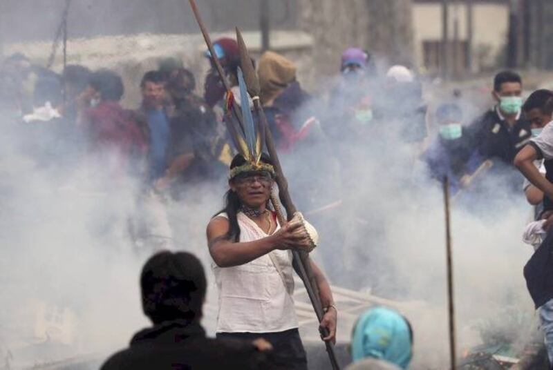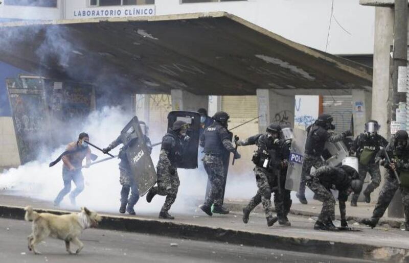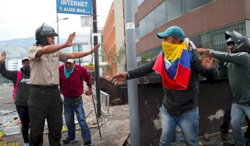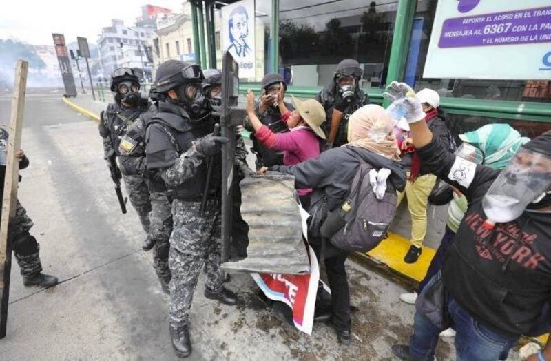 Allí, la Policía está enfrentando con todo su arsenal a los manifestantes, que en su mayoría son parte de los indígenas que marcharon hacia la ciudad capital a protestar la medidas de austeridad neoliberales que pretende imponer Moreno.