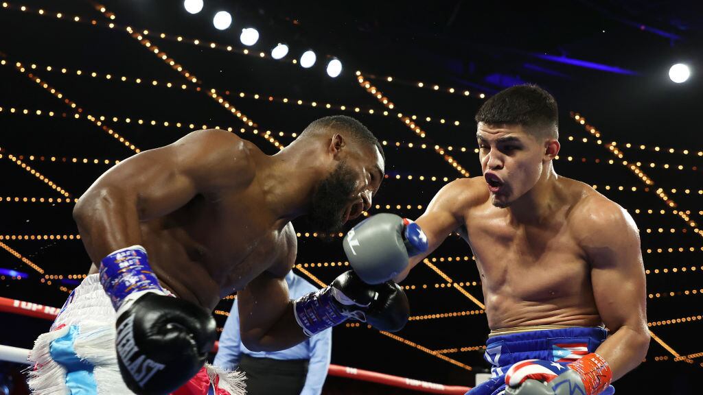 Xander Zayas Xander Zayas golpea a Quincy LaVallais durante su pelea de peso mediano junior en el Teatro Hulu en el Madison Garden el 19 de marzo de 2022 en Nueva York, Nueva York. (Foto de Al Bello/Getty Images) (Al Bello/Getty Images)