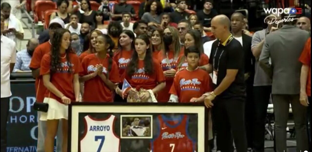 Durante el partido, que enfrentaba a la isla contra Brasil, se homenajeó, de manera sorpresa, al exjugador de baloncesto