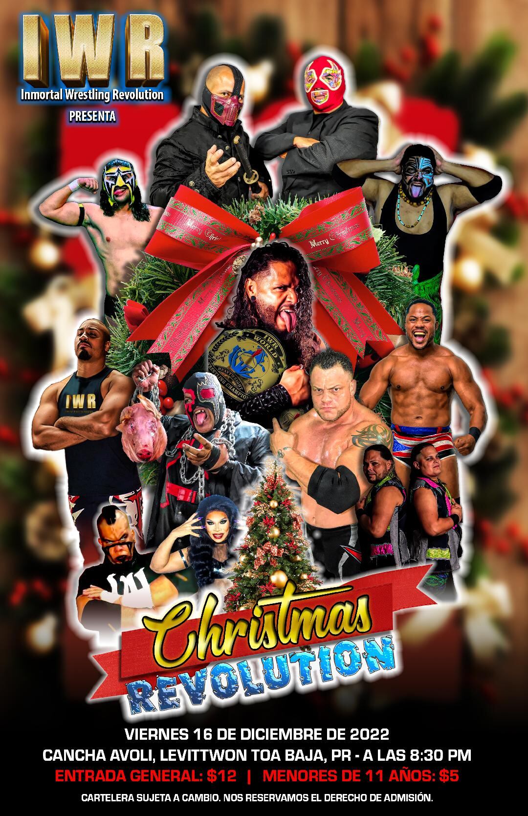 La empresa IWR (Inmortal Wrestling Revolution) establecida en San Juan, Puerto Rico presenta su próximo evento llamado, CHRISTMAS REVOLUTION el cierre de temporada este próximo viernes, 16 de diciembre, en la Cancha de Volleyball AVOLI en Levittown en el pueblo de Toa Baja.