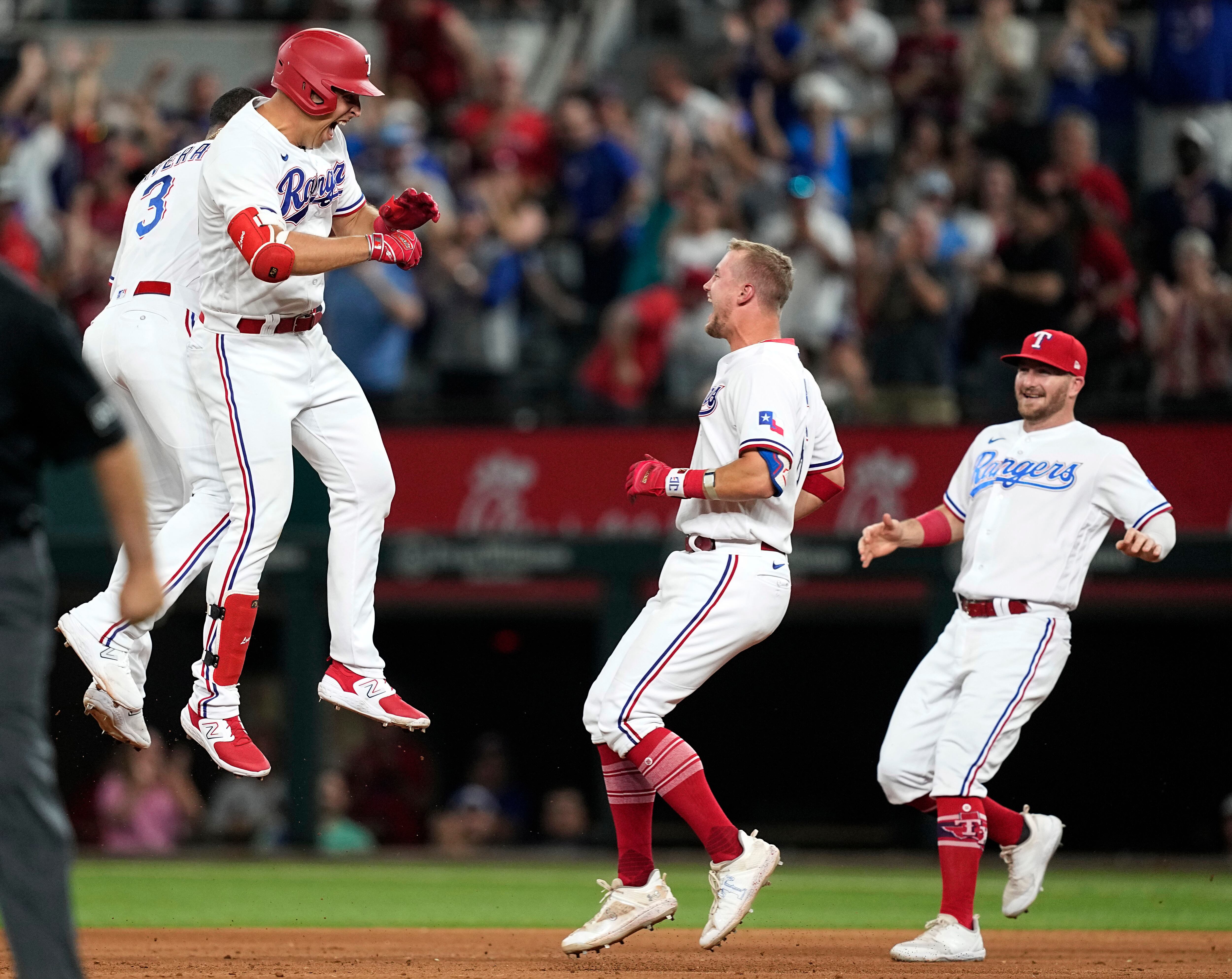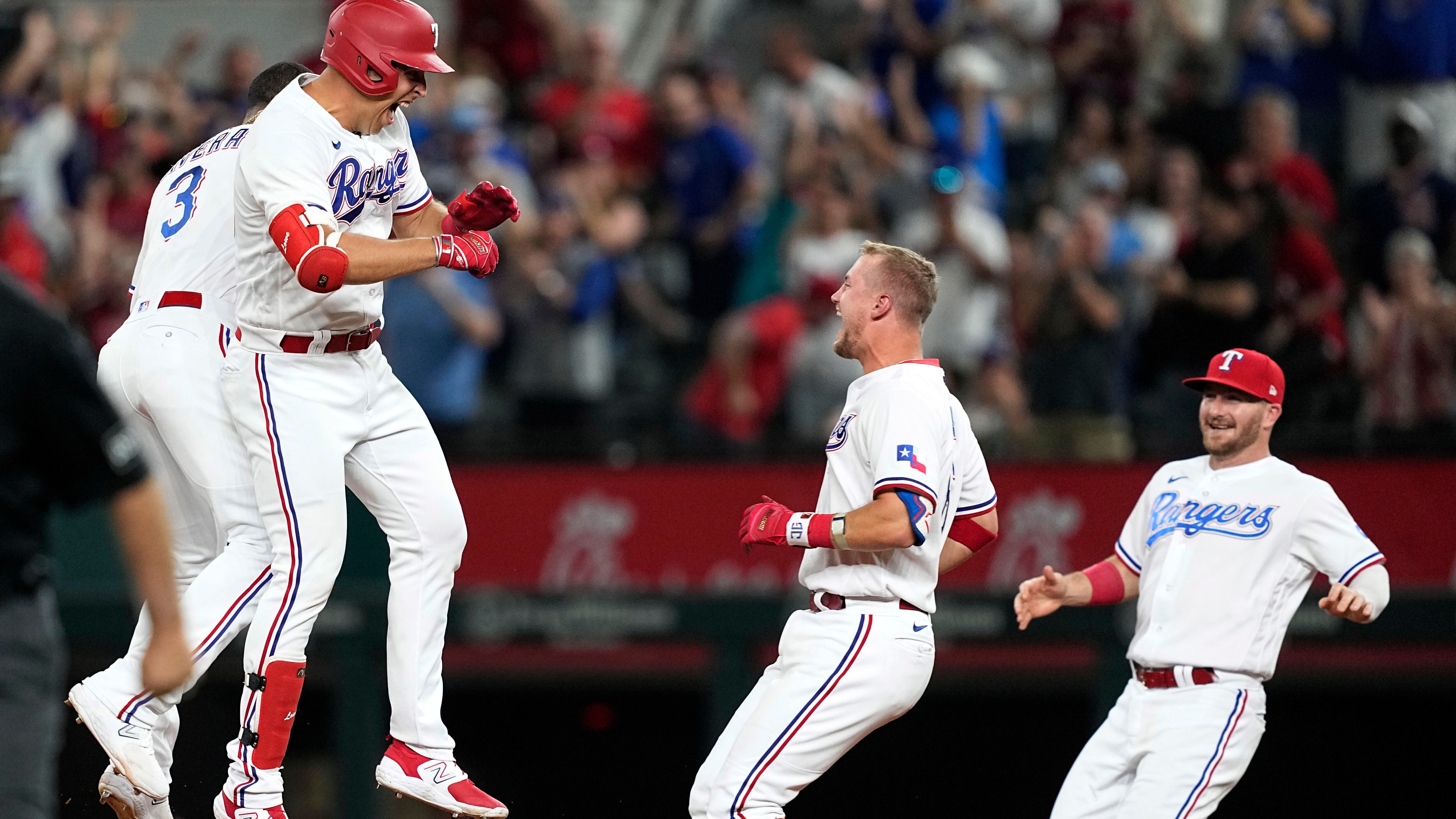 Por los Rangers, el cubano Adolis García de 4-1. Los dominicanos Ezequiel Durán de 3-1 con una anotada y una empujada, Leody Taveras de 4-0 con una empujada.