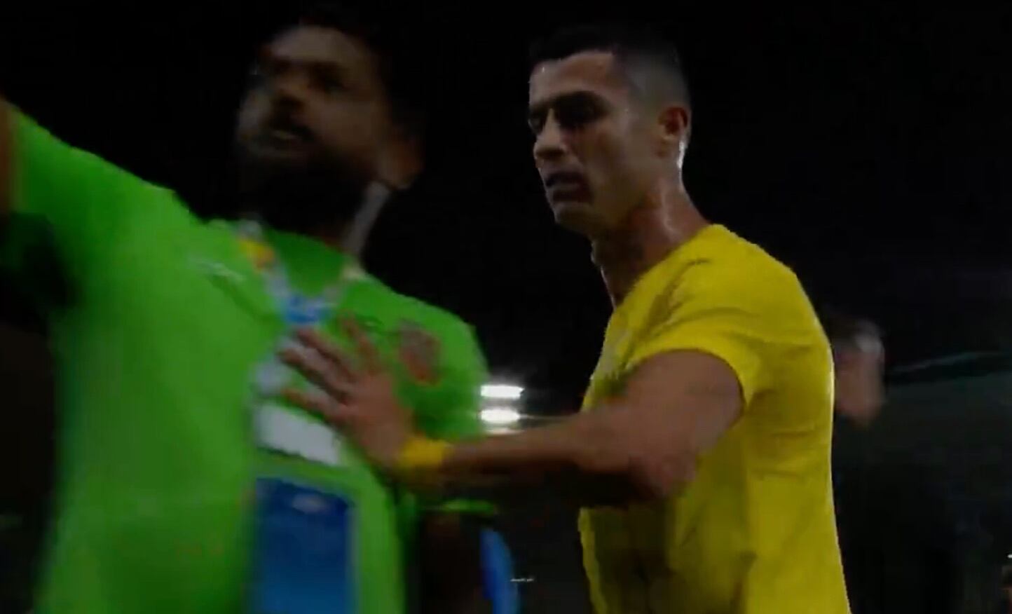 Camino al vestidor, Ronaldo se encontró con un aficionado, quien se quiso sacar una selfie con él; sin embargo, el astro portugués estaba furioso, por lo que terminó por aventarlo.