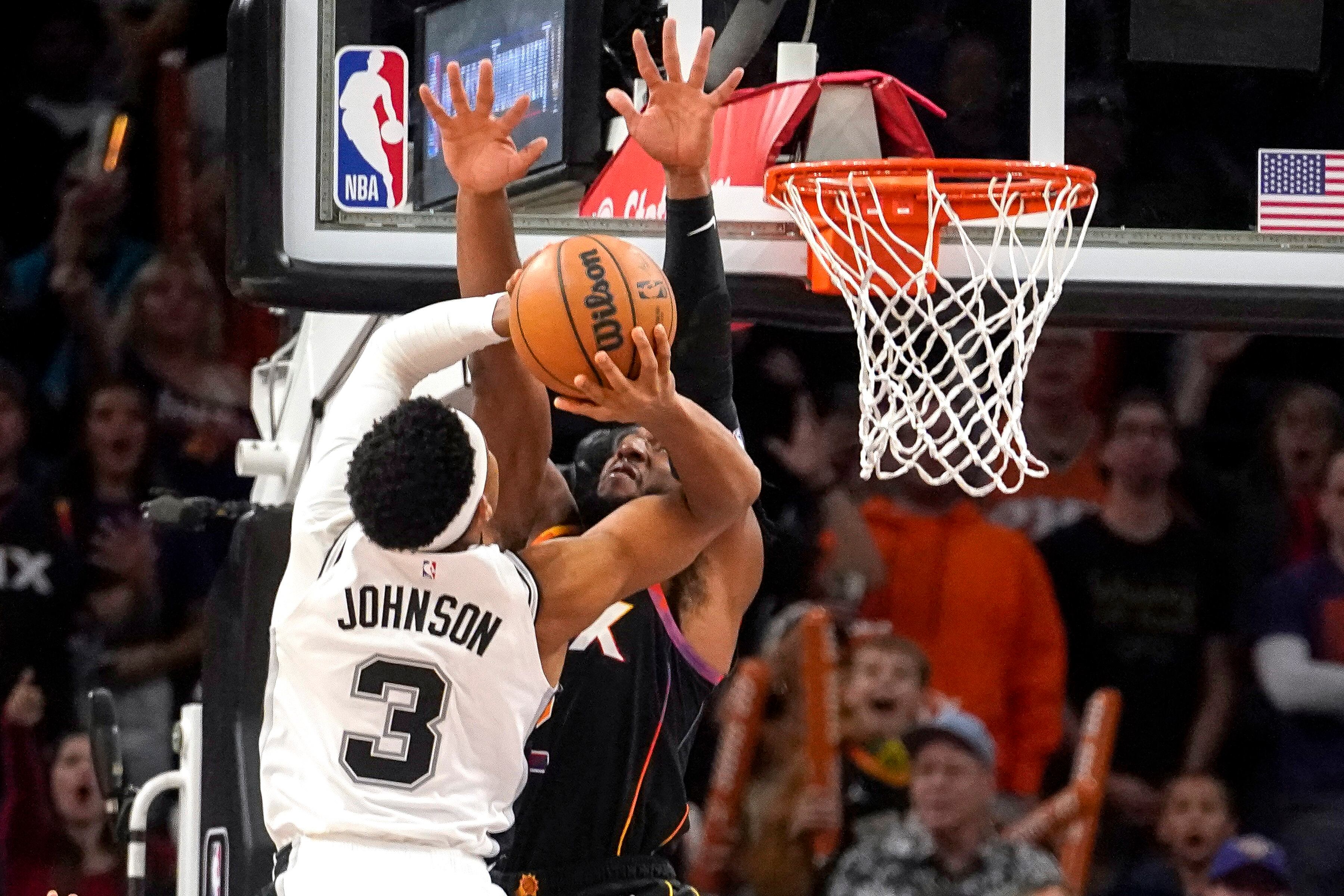 San Antonio, que perdía hasta por 20 puntos en el encuentro, robó el balón a Kevin Durant en los últimos segundos, mientras que Johnson, quien lideró a los Spurs con 27 puntos, encestó para quebrar la racha de nueve derrotas consecutivas de los Spurs ante Phoenix.