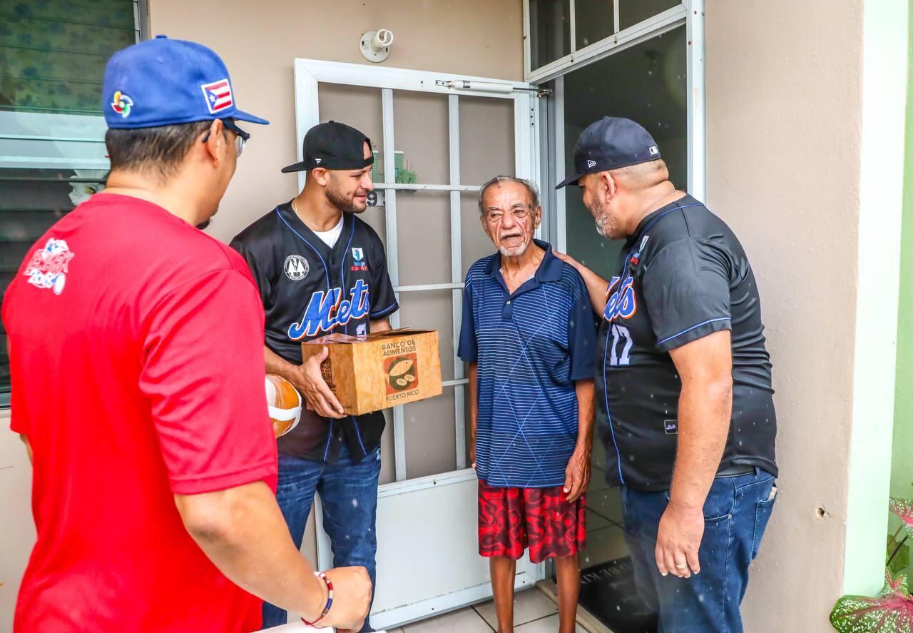 Los jugadores del equipo de los Mets de Guaynabo, junto a decenas de voluntarios, visitaron a residentes de la comunidad Sunset Harbor para hacer entrega de las compras de alimentos donadas por el Banco de Alimentos de Puerto Rico.