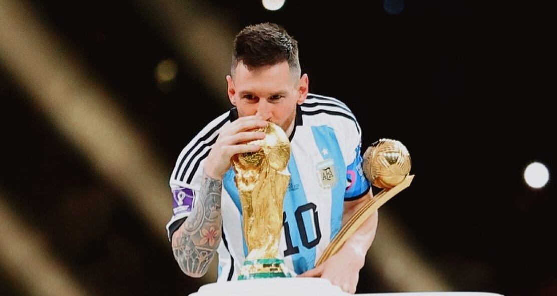 Messi besando la copa del mundo Catar 2022 Foto: Instagram @leomessi