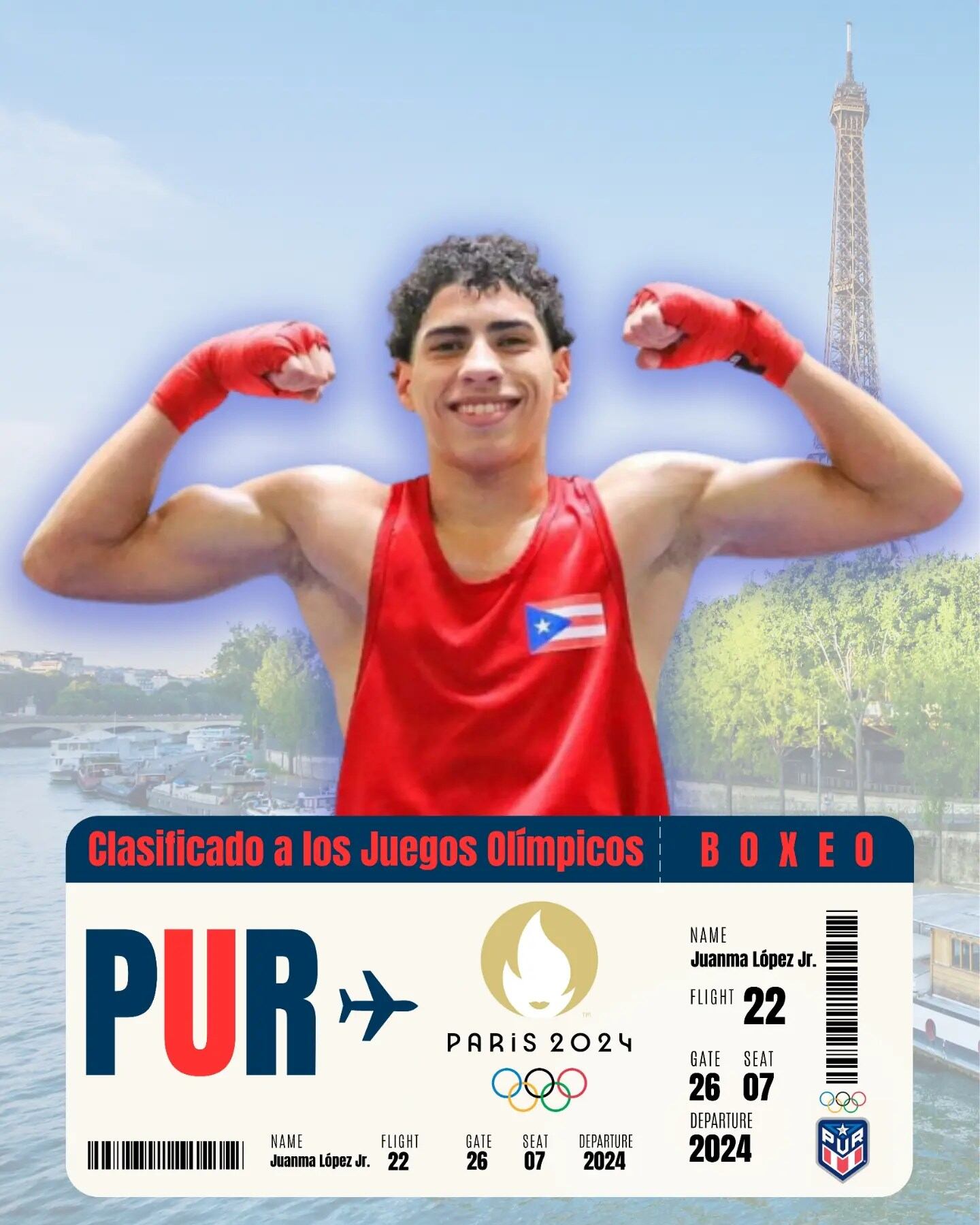 “Hace 20 años su papá, Juanma López, representó a Puerto Rico en los Juegos Olímpicos de Atenas 2004, siendo esta la primera vez que padre e hijo logran clasificación olímpica en el deporte del boxeo para nuestro país”, indicó el Copur.