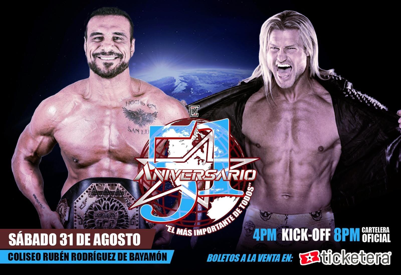 World Wrestling Council (WWC) se complace en presentar Aniversario 51, el evento de lucha libre más importante de todos, dedicado a Shane The Glamour Boy, el próximo sábado 31 de agosto en el Coliseo Rubén Rodríguez de Bayamón, comenzando a las 4:00pm con el “Kick-Off”, el “Meet & Greet” y la Fiesta de Pueblo. A las 8:00 de la noche suena la campana con la cartelera oficial. Confirmado, El Acróbata de Puerto Rico, Carlos Colón, estará presente.