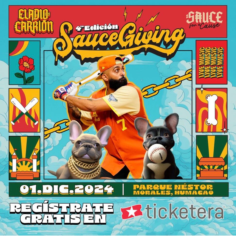 La Fundación Sauce for a Cause del ganador del Latin GRAMMY Eladio Carrión anunció la cuarta edición de su evento benéfico SauceGiving, una especial celebración de Acción de Gracias, con la que reunirá a grandes estrellas del mundo de la música y el béisbol el domingo, 1 de diciembre en el Estadio Néstor Morales en Humacao, Puerto Rico, a partir de las 9:00 a.m. por orden de llegada.