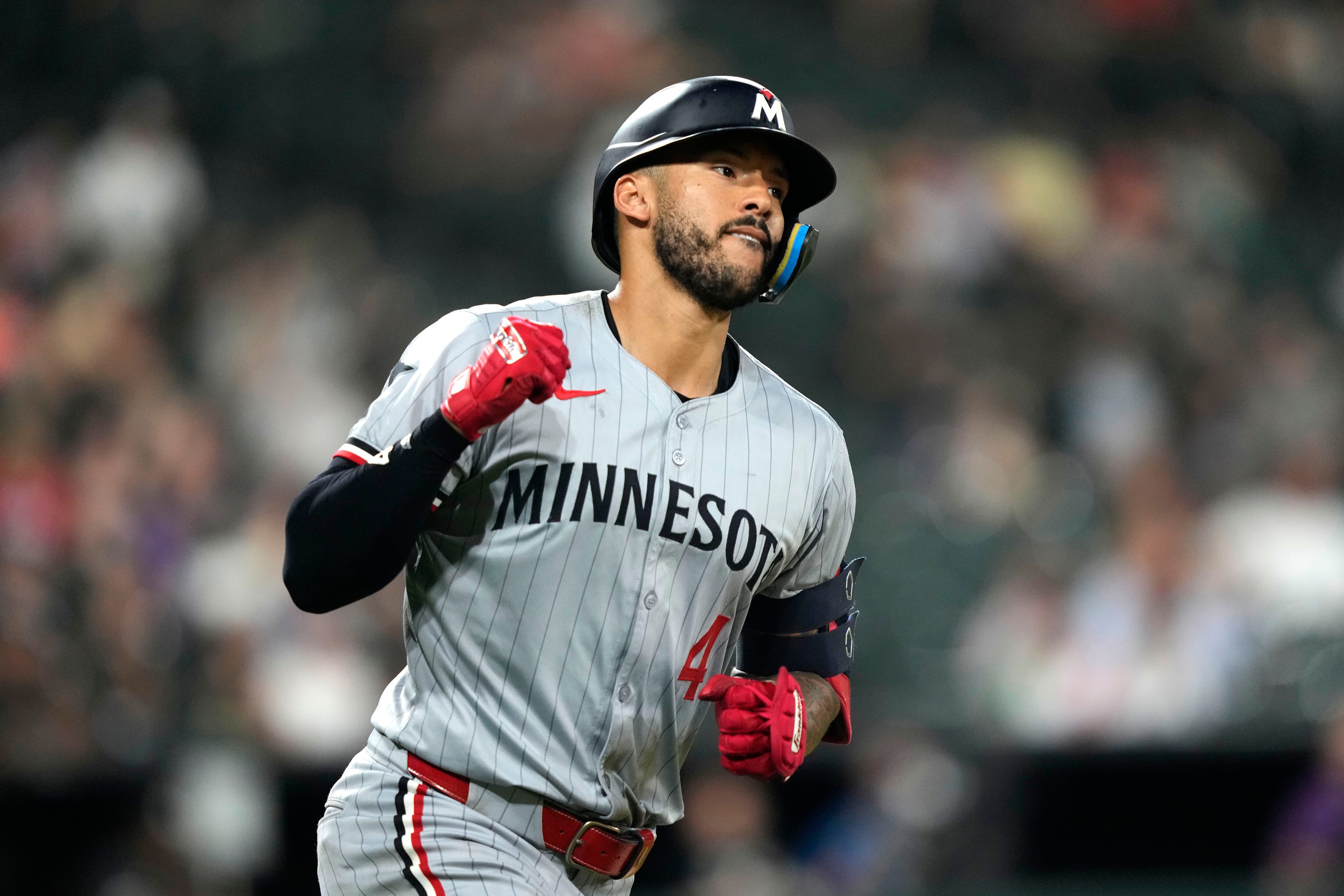 ARCHIVO - El boricua Carlos Correa, de los Mellizos de Minnesota, festeja luego de batear un jonrón ante los Medias Blancas de Chicago, el lunes 8 de julio de 2024 (AP Foto/Charles Rex Arbogast, archivo) AP (Charles Rex Arbogast/AP)