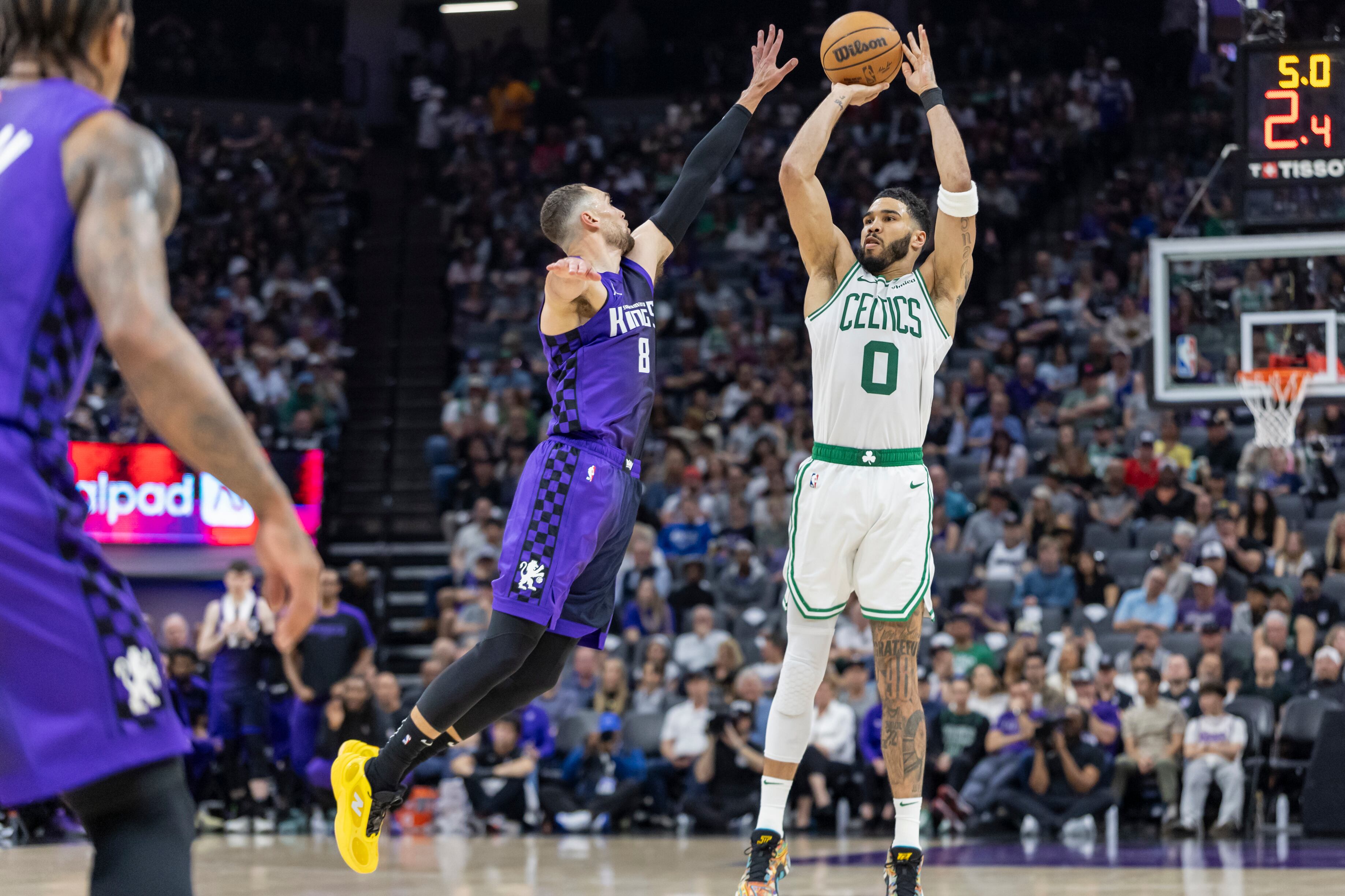 El seis veces All-Star se lesionó al final del tercer cuarto en la sexta victoria consecutiva de los Celtics. Después de encestar su quinto triple del juego, Tatum recibió una falta flagrante 1 por parte del pívot de los Kings, Domantas Sabonis. Permaneció en el suelo un tiempo antes de encestar uno de dos tiros libres y ser ayudado a llegar al vestuario de Boston.