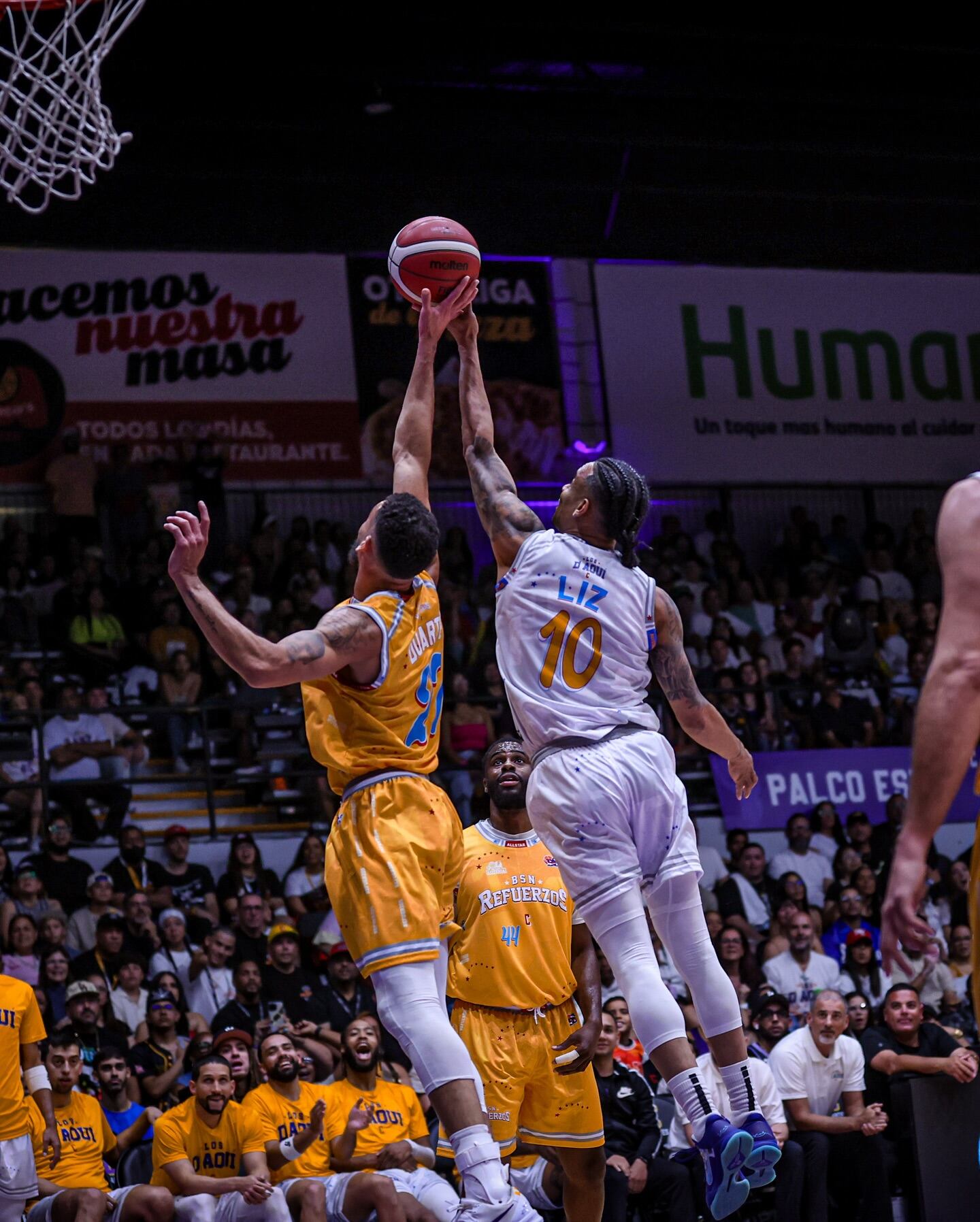 El bautizado equipo “Los D’ Aquí” dominó el tercer parcial con 42 puntos, frente a 29 de los refuerzos, y logró 32 puntos en el cuarto parcial, deteniendo la ofensiva de los importados a tan solo 22 en el último cuarto.