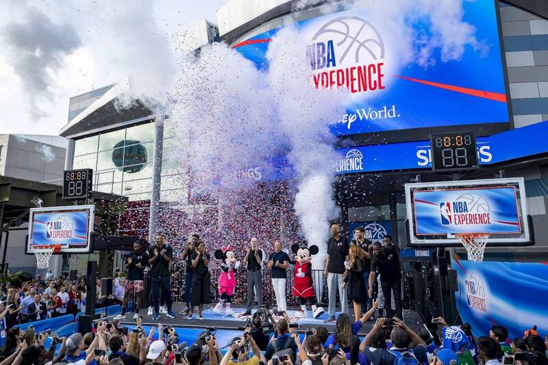 Fue una celebración digna de un campeonato durante la mañana del lunes en Disney Springs, en Lake Buena Vista. Y todo se debía a la gran apertura de NBA Experience, el nuevo parque de Disney.