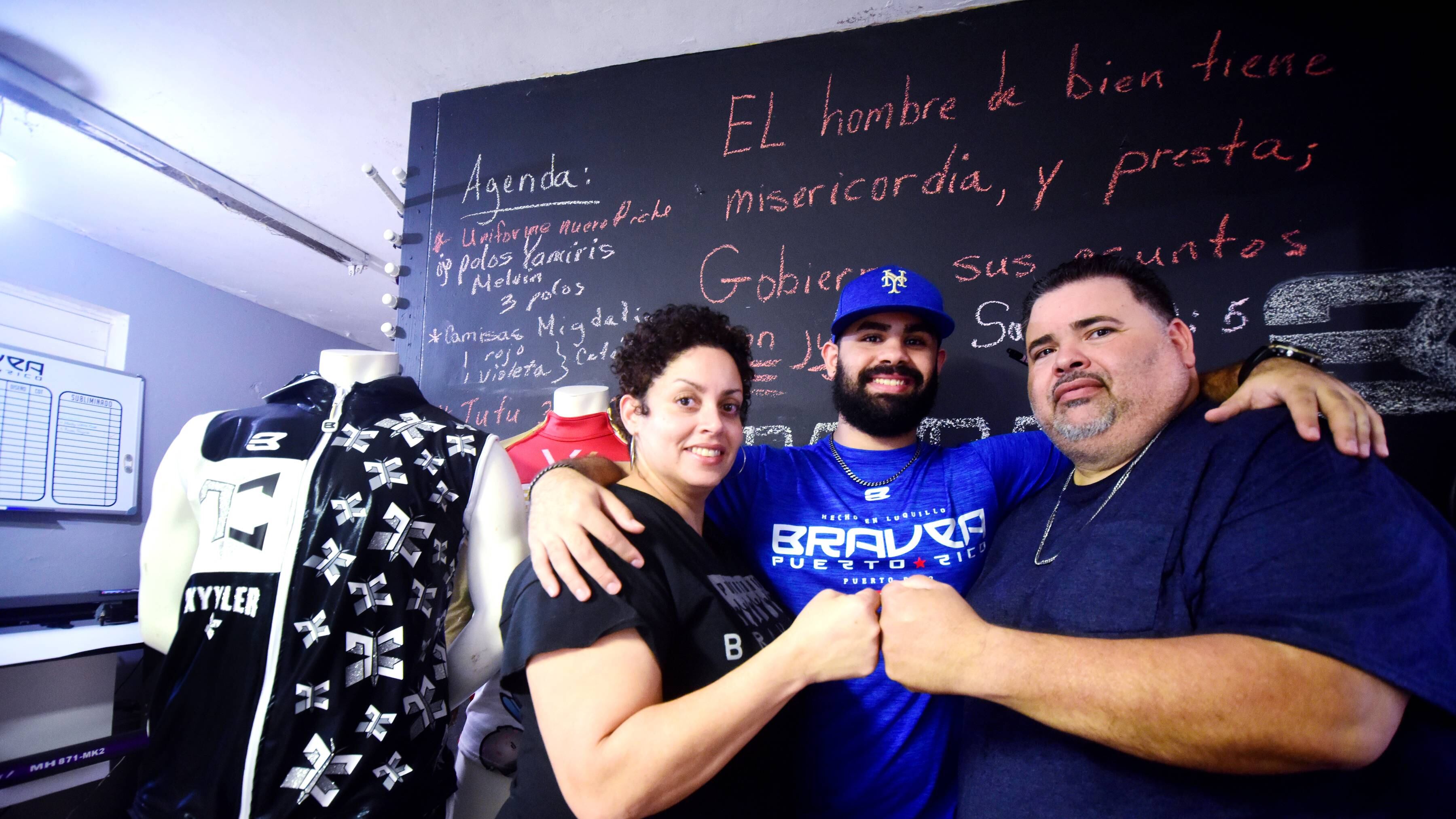 “Esto empezó porque mami se dedicaba a la costura. Ella hacía sus cositas en un negocio que teníamos aquí mismo en casa y que en aquel entonces se llamaba Creaciones Aixa. Antes del accidente en el parque, mami nos hacía los uniformes a los del equipo de papi. Y eso se empezó a regar, porque gustaban. De ahí pasó lo que pasó conmigo, que cogí un bolazo en la cara, y mis inventos en la computadora, que yo lo que hacía era dañar materiales [ríe], terminaron juntándose con las ideas de mami”, recuerda.