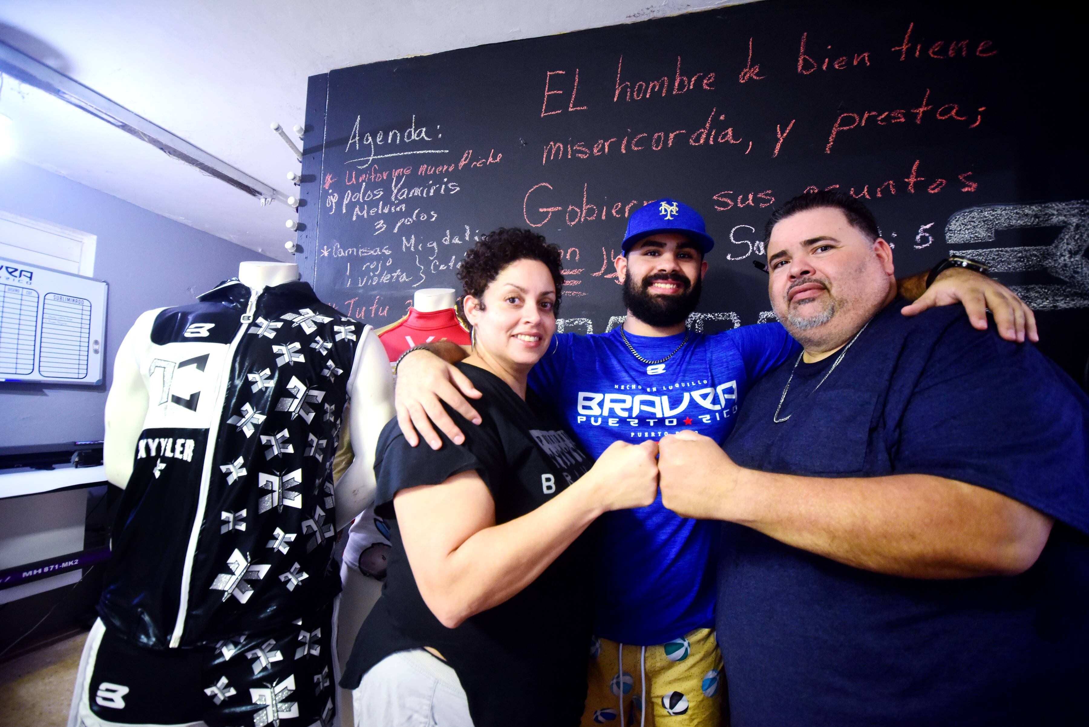 “Esto empezó porque mami se dedicaba a la costura. Ella hacía sus cositas en un negocio que teníamos aquí mismo en casa y que en aquel entonces se llamaba Creaciones Aixa. Antes del accidente en el parque, mami nos hacía los uniformes a los del equipo de papi. Y eso se empezó a regar, porque gustaban. De ahí pasó lo que pasó conmigo, que cogí un bolazo en la cara, y mis inventos en la computadora, que yo lo que hacía era dañar materiales [ríe], terminaron juntándose con las ideas de mami”, recuerda.