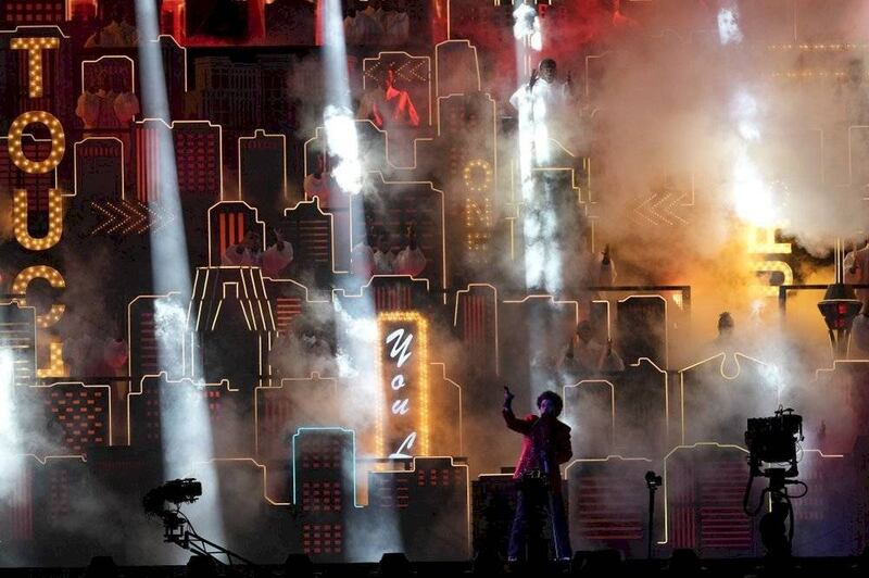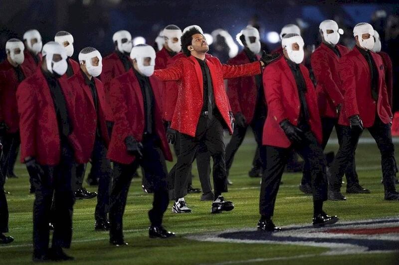 Finalmente The Weeknd cobró vida, cuando habían pasado ya 10 minutos de la presentación y decenas de sus bailarines llegaron al campo para interpretar la explosiva “Blinding Lights” con toques de flash mob.