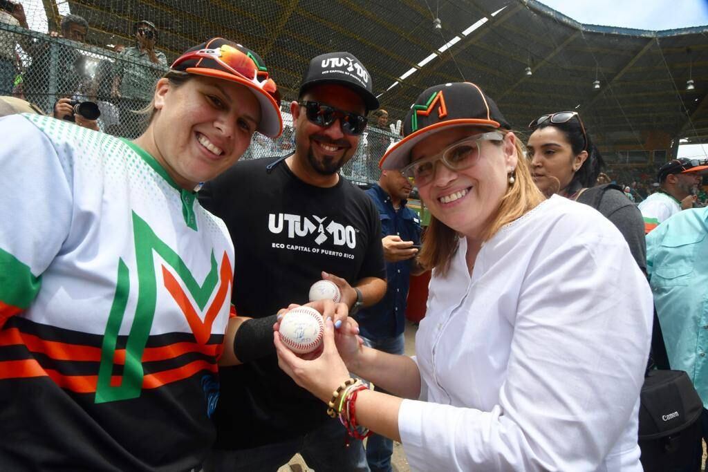 Yulín recibió dos pelotas firmadas por Diamilette y se tomó fotos con medio equipo de Utuado. También intercambió algunas palabras con la primera mujer de la Doble A.