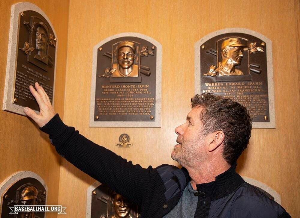 Edgar, ya mismo te toca mudarte a Cooperstown. Erik Strohl, vicepresidente de Exhibiciones y Colecciones del Salón de la Fama, le dio un tour a Edgar Martínez por el Salón de la Fama en Cooperstown durante la tarde del lunes. Y el doradeño no pudo contener su emoción al ver y tocar la placa del caballote original, Roberto Clemente.
