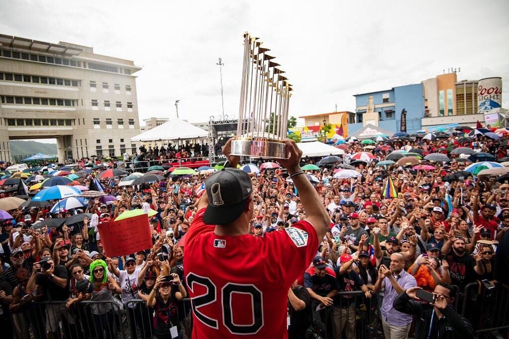 Hoy (sábado), la lluvia no es impedimento para que los Medias Rojas de Boston y su dirigente boricua, Alex Cora, lleguen al Paseo de las Artes de Caguas para celebrar su noveno campeonato en las Grandes Ligas. Desde que aterrizaron en el aeropuerto Luis Muñoz Marín, a eso de las 12:20 del mediodía, el tráfico en las principales avenidas se paralizó.