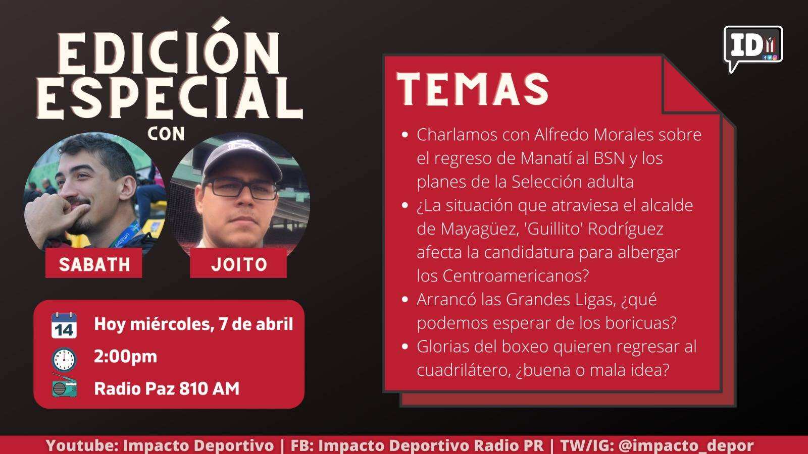 La edición especial comenzará a las 2 de la tarde y usted la puede sintonizar a través de Radio Paz 810AM o en las redes de Impacto Deportivo.