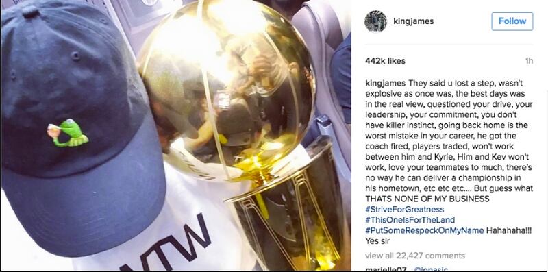 “Eso no me importa”, dijo James en un foto que colgó en su cuenta de Instagram.