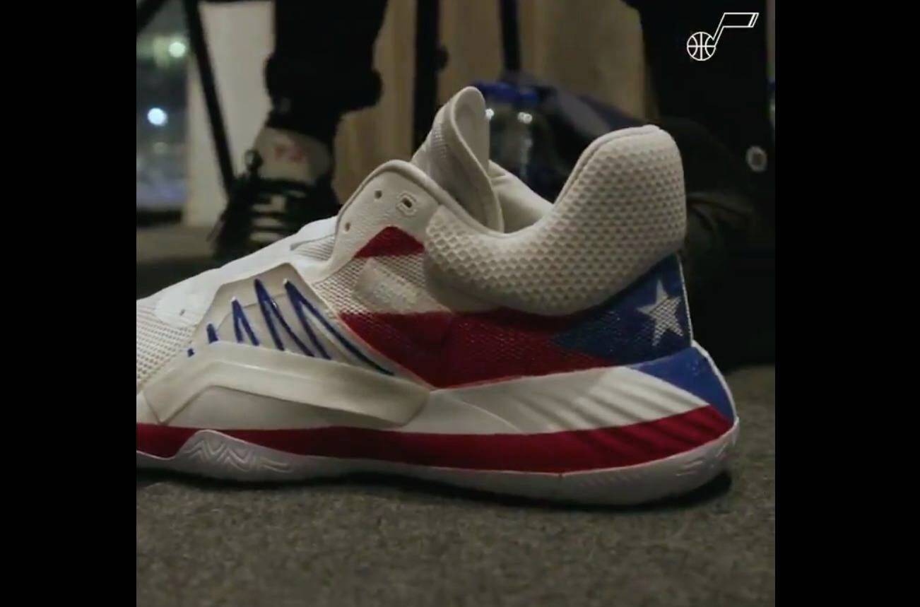El jugador Donovan Mitchell, líder de los Jazz de Utah, le pidió a su que se hiciera una versión de sus tenis con las banderas de Puerto Rico y Australia, ante los desastres naturales que impactan a ambas naciones.