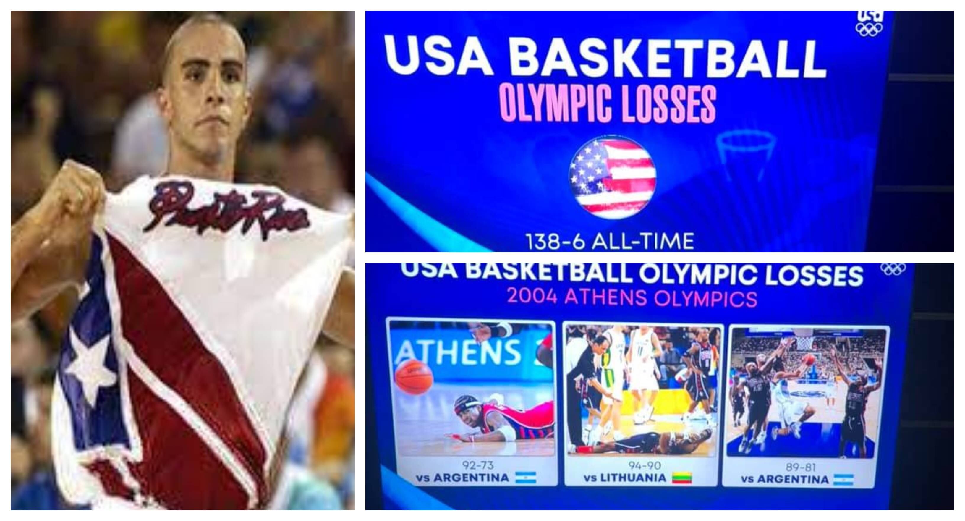Y pues, como a NBC se les olvidó  la paliza aquella que Julio Toro, Arroyo, Eddie, Rolo, Picu y los demás le dieron a Estados Unidos, 92-73, en los Juegos de Atenas 2004, aquí se las traemos de nuevo para que echen al lado el racismo y la memoria selectiva.