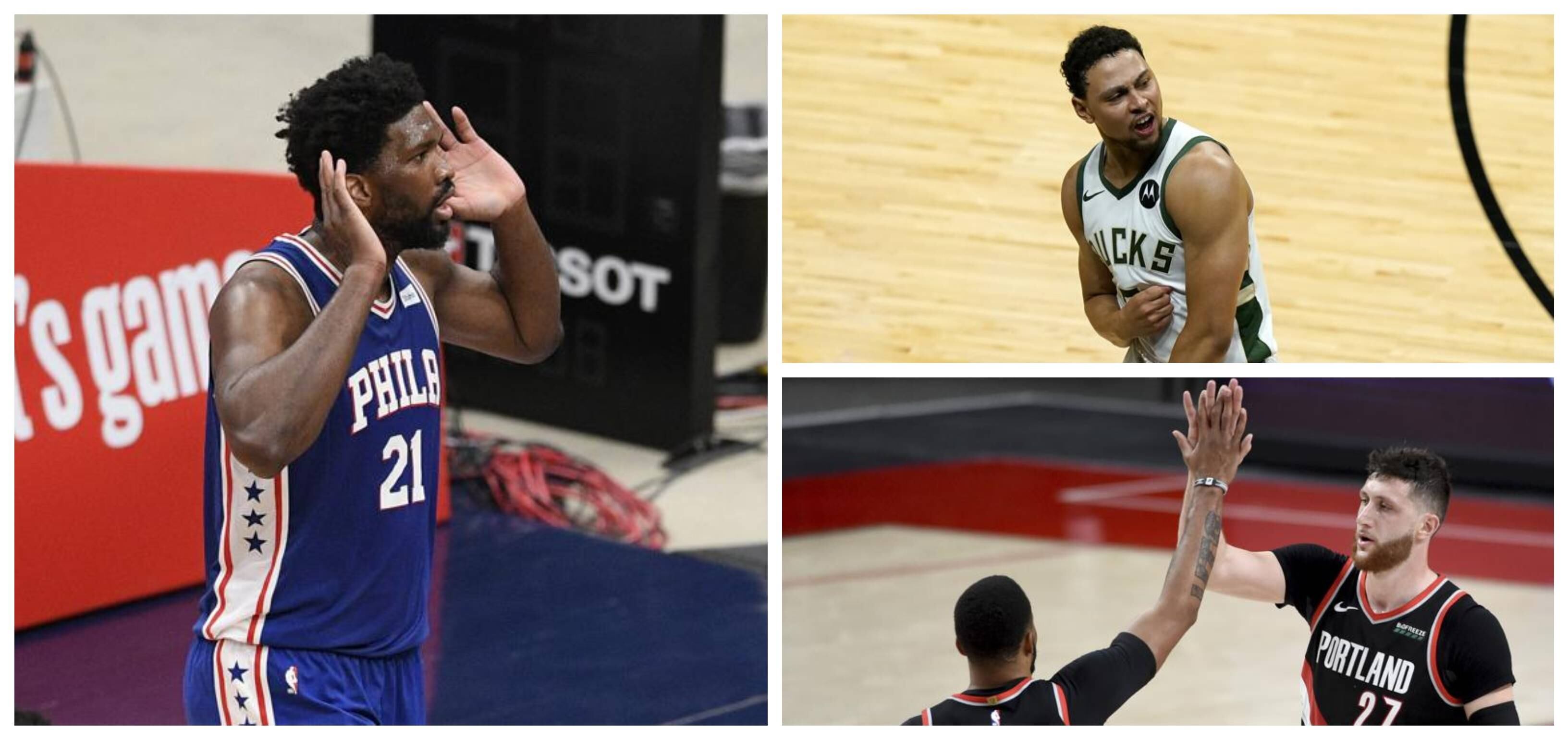 Joel Embiid se sacudió las burlas tras errar en un donqueo y se aseguró de no fallar en su siguiente intento.