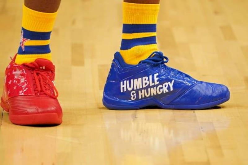 Destacó Jaylen Brown con sus Adidas de dos colores, una roja y otra azul, con la frase “Humilde y hambriento”.