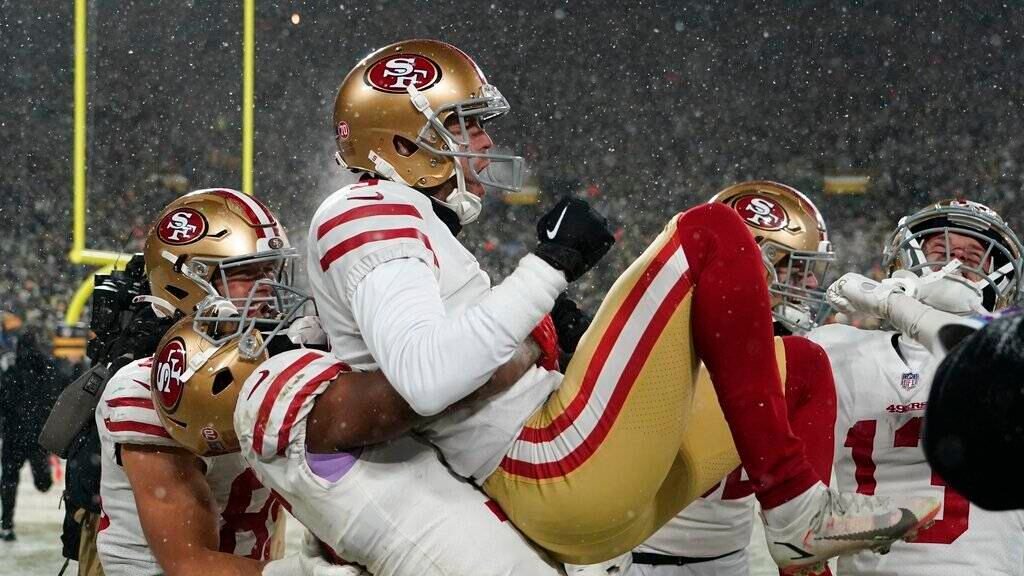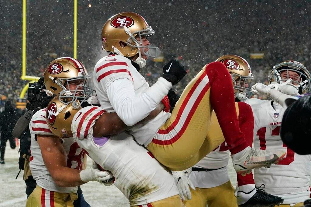 Los 49ers de San Francisco celebran una anotación durante el juego de los playoffs de la NFL contra los Packers de Green Bay, el sábado AP