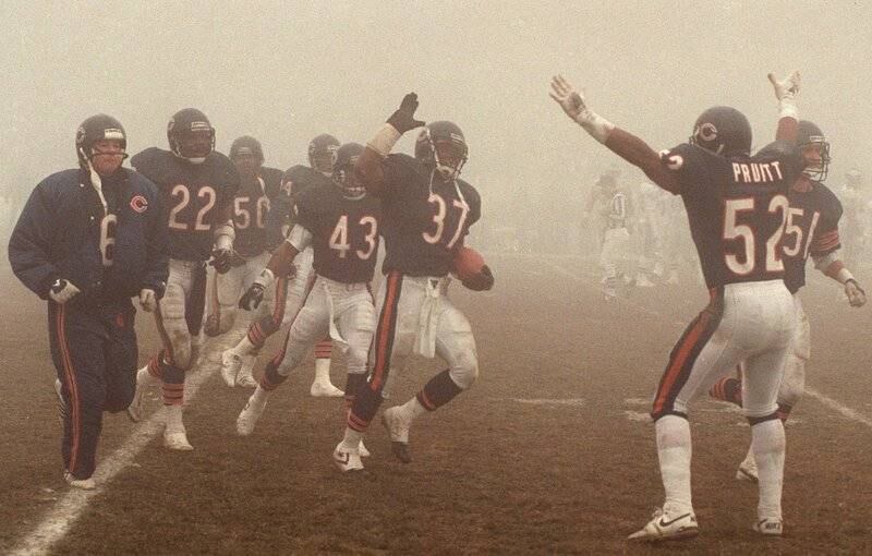 Hacia el final del segundo periodo, cuando los Bears ganaban por 17-6, una densa niebla llegó desde el Lago Michigan y envolvió el Soldier Field.