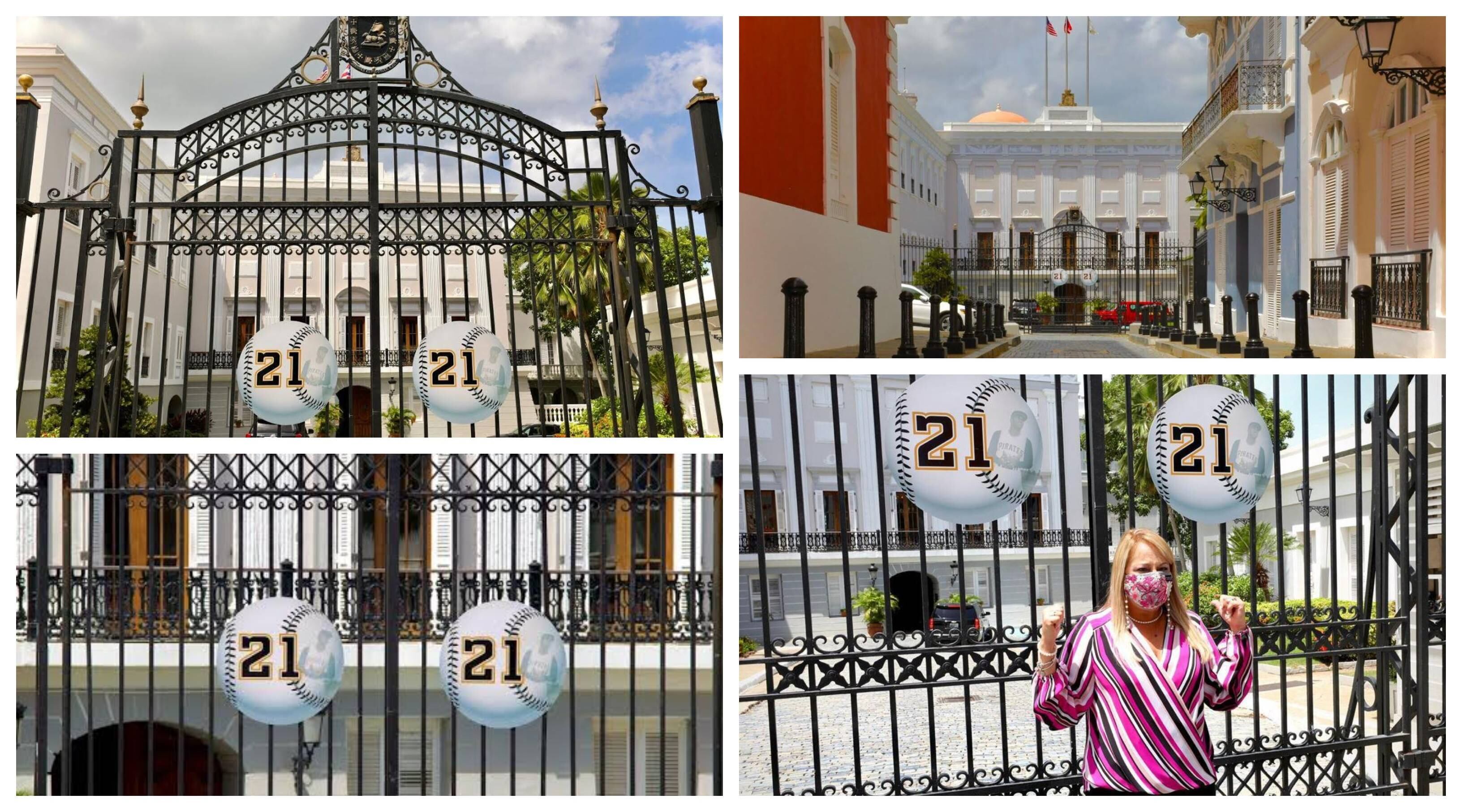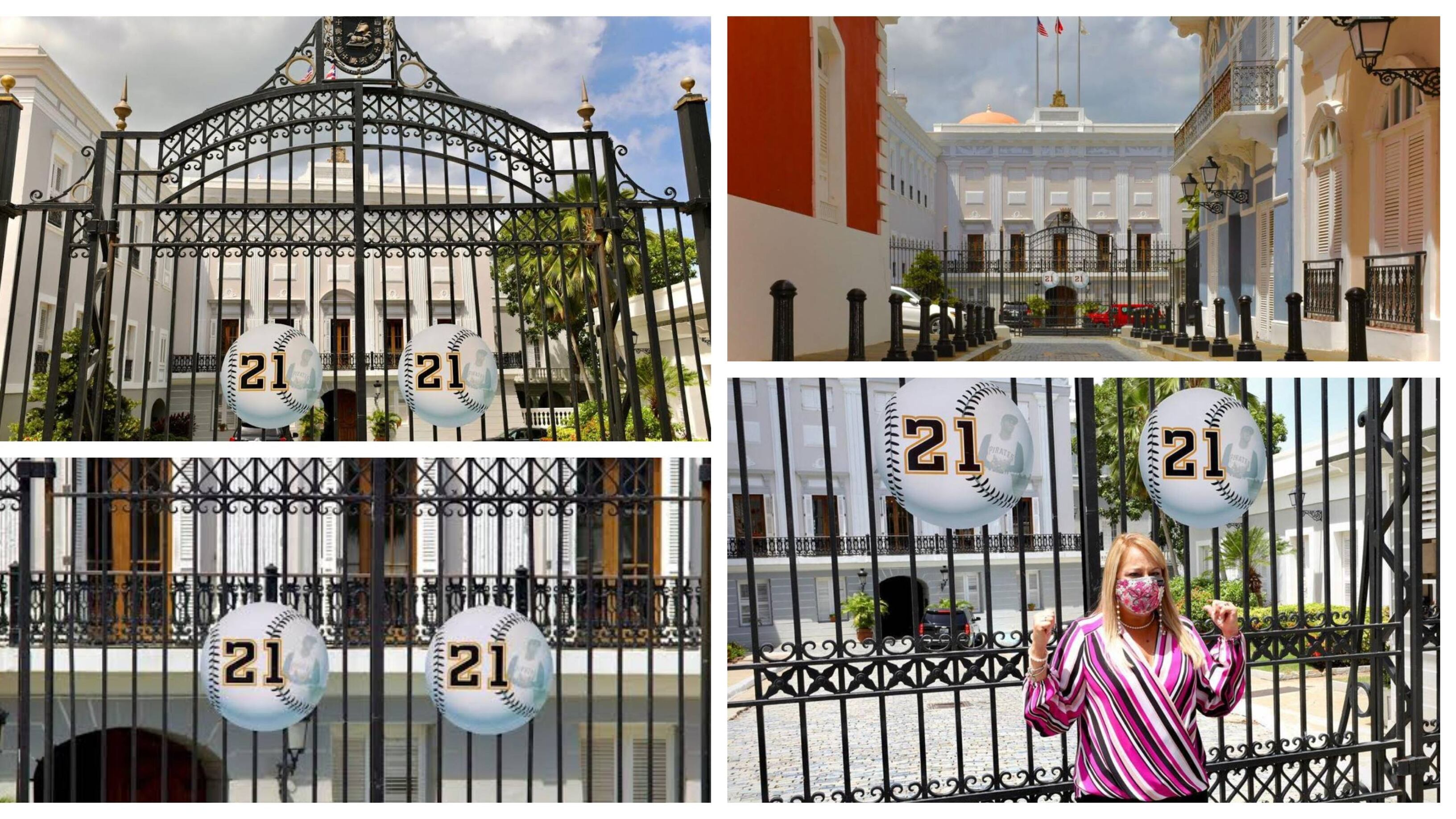 Vázquez Garced dijo que además del Encendido con el color amarillo de los Piratas de Pittsburgh en la fachada de La Fortaleza esta noche, se expresa la solidaridad de todos los puertorriqueños desplegando dos imágenes de una pelota de beisbol con el #21 en los portones principales de la Mansión Ejecutiva.