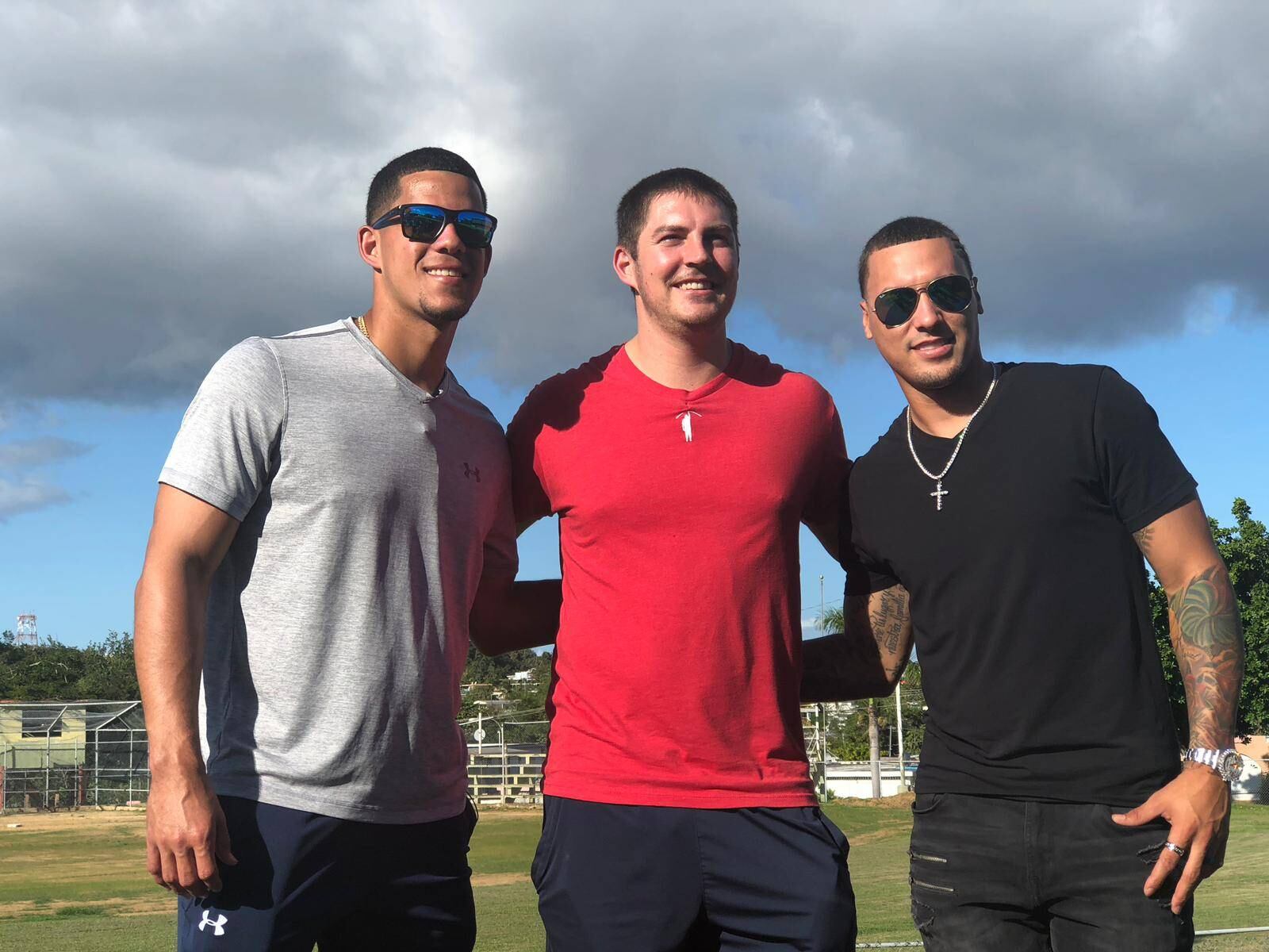 El lanzador de los Indios de Cleveland, Trevor Bauer, llegó a Puerto Rico ayer para compartir unos días con los boricuas Javier Báez y José O. Berríos.