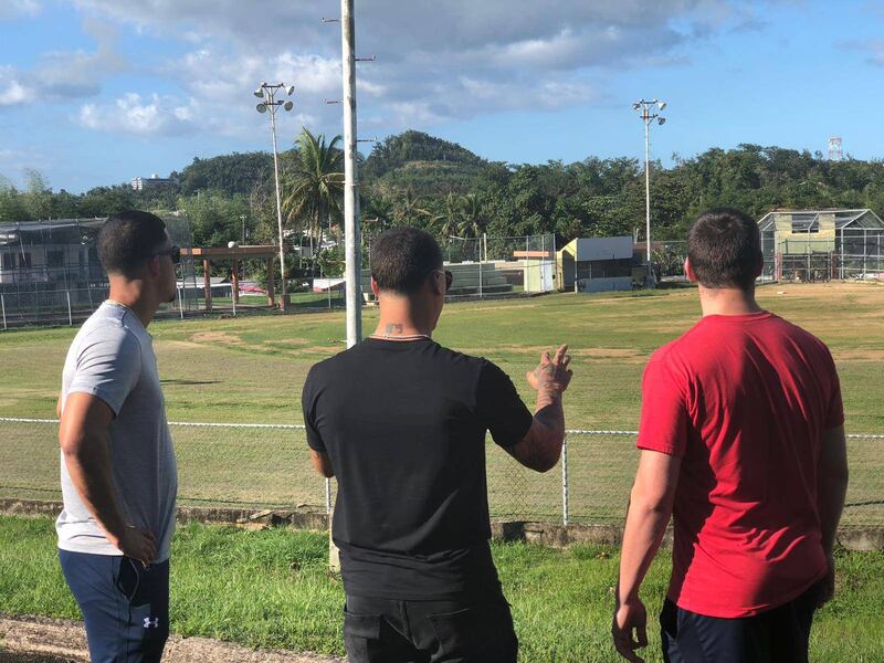 En la mañana de hoy, los muchachos lideraron una clínica organizada por Berríos en el parque de la urbanización Flamboyán Gardens.